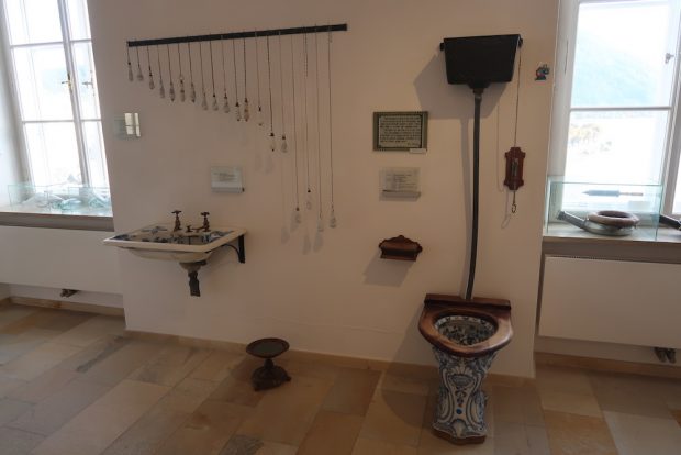 Nachdem Mittagessen bestiegen wir eines der Traunsee-Schiffe, das uns Richtung Ortszentrum brachte. Dort besuchten wir das Sanitärmuseum „Klo & So“, bestaunten aufwändig bemalte und kunstvoll gestaltete WCs, Waschtische, Badewannen und Badezimmer-Zubehör aus der Vergangenheit.